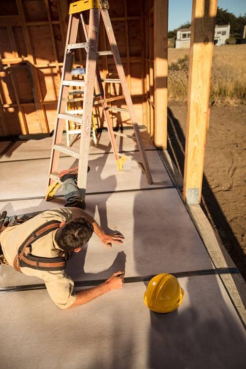 The sections of an extension ladder must adequately overlap. Avoid tripping hazards by keeping the area around the tip and base of the ladder clear. Do not run hoses or extension cords along the ladder’s rungs where they will create a tripping hazard.