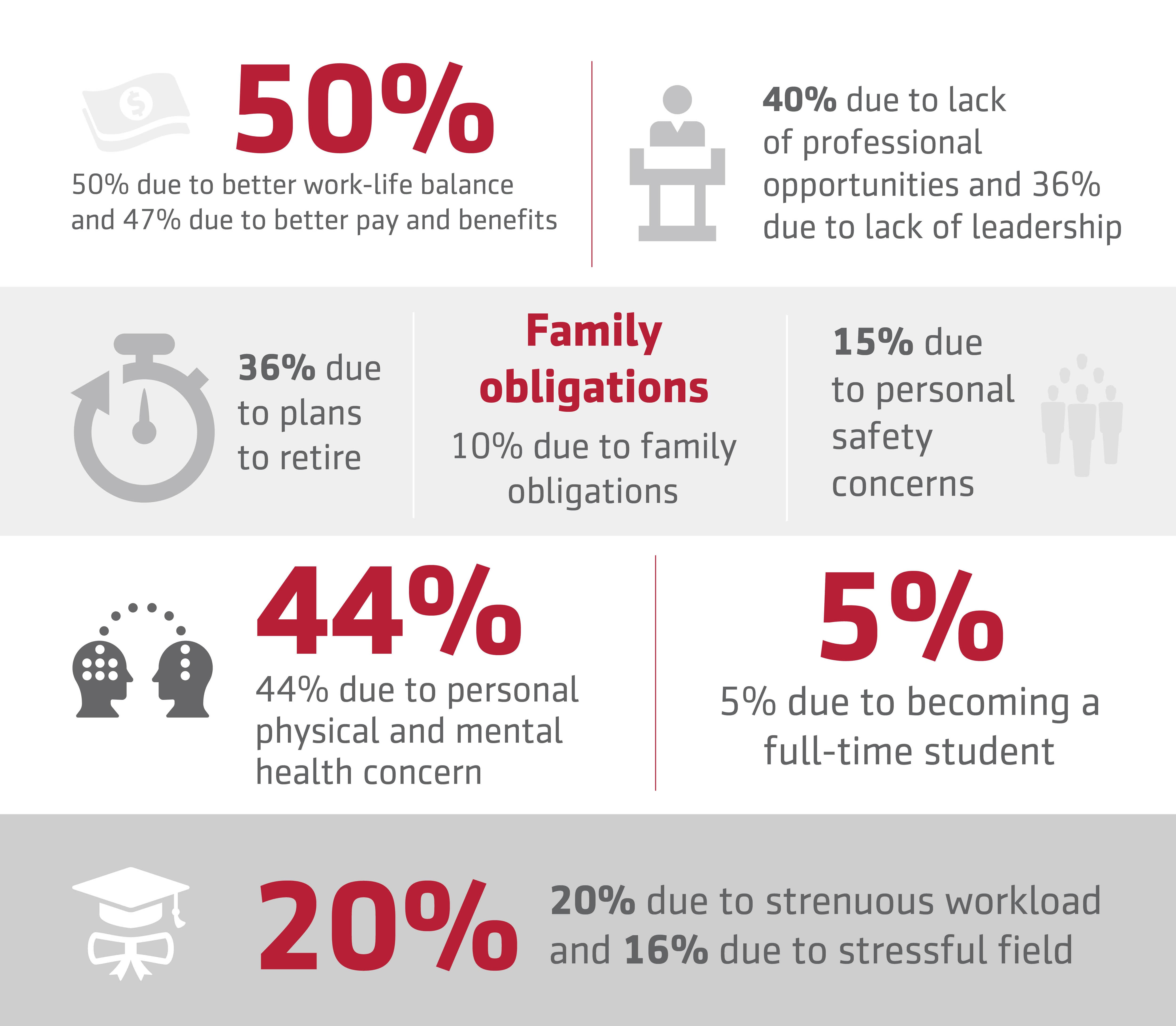 Results of a National Associations of Emergency Medical Technicians (NAEMT) survey citing respondents with more than one reason for leaving.