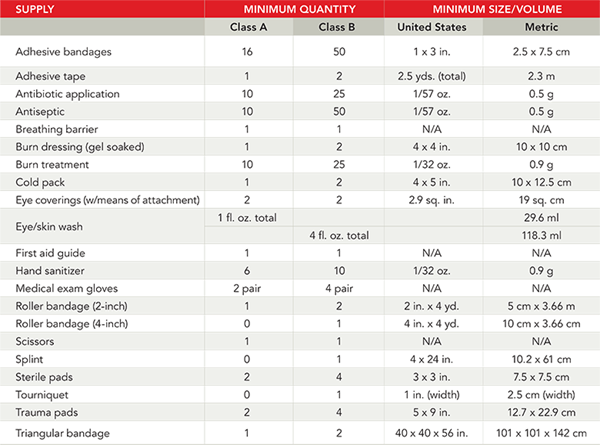 A revision of the ANSI/ISEA standard, Z308.1-2015, took effect in June 2016 and introduced two classes of first aid kits. Identified as “Class A” and “Class B,” the kits are based on the quantity and assortment of supplies.